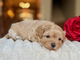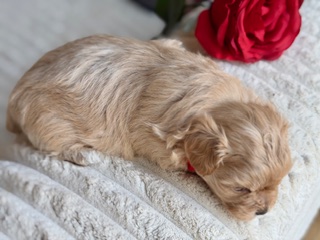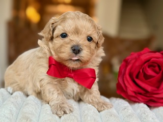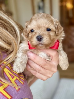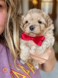 Meet Finn, a sweet little Maltipoo with that gorgeous apricot color everyone’s always hoping for. He’s the kind of puppy who looks at you like you’re his whole world, with soft curls, a teddy bear face, and the happiest little personality. Finn loves being close, soaking up attention, and making people smile without even trying. He’s not just a puppy—he’s a future best friend ready to fit right into your everyday life. 🐾💛