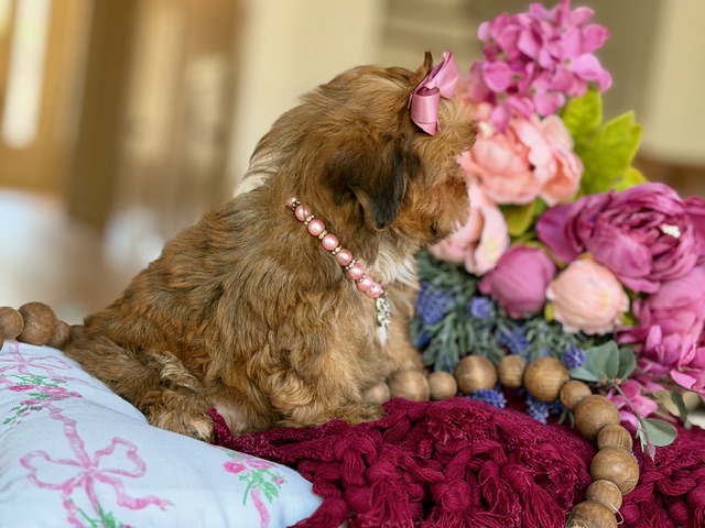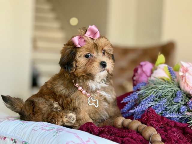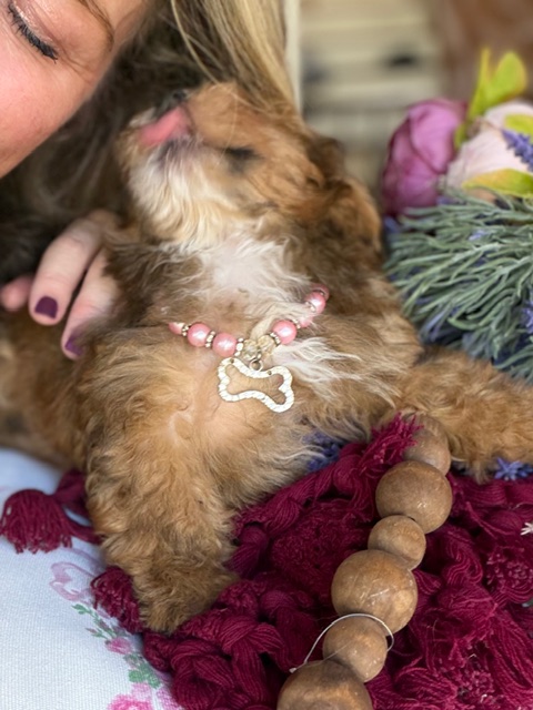 Hi, I’m Blossom 🌸—a little Malti-Poo with fluffy curls, bright eyes, and a smile that tends to sneak up on people. I love being playful one moment and cuddly the next, always finding my way right into the middle of whatever’s going on. I have a sweet, happy spirit and a gentle confidence that makes me feel right at home wherever I land.