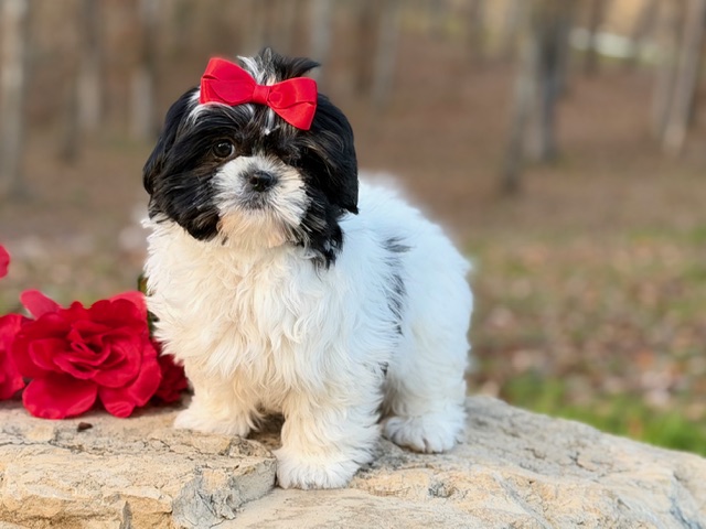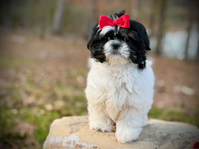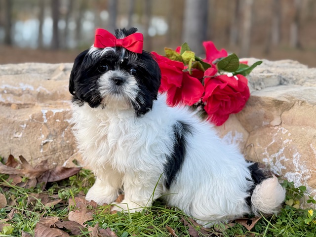Hi, I’m Ella Rose 🤍 I’m a black and white Shih-Tzu with soft, beautiful hair, a teddy bear face everyone seems to fall in love with, and a big personality packed into a tiny body. I love playing with my toys, being silly, and sharing sweet moments with the people around me — I can’t wait to bring my happy little heart into my forever home.